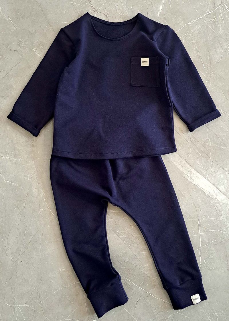 Zestaw dresowy w przepięknym odcieniu granatowym. Najlepsza propozycja dla każdego dziecka. Dresik komfortowy i funkcjonalny na każdy dzień– do przedszkola, szkoły, żłobka, na spacer i rodzinne wyjścia.