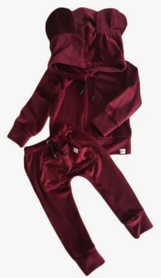 Zestaw pluszowy w odcieniu bordo . Najlepsza propozycja dla każdego dziecka. Dresik komfortowy i funkcjonalny na każdy dzień– do przedszkola, szkoły, żłobka, na spacer i rodzinne wyjścia.