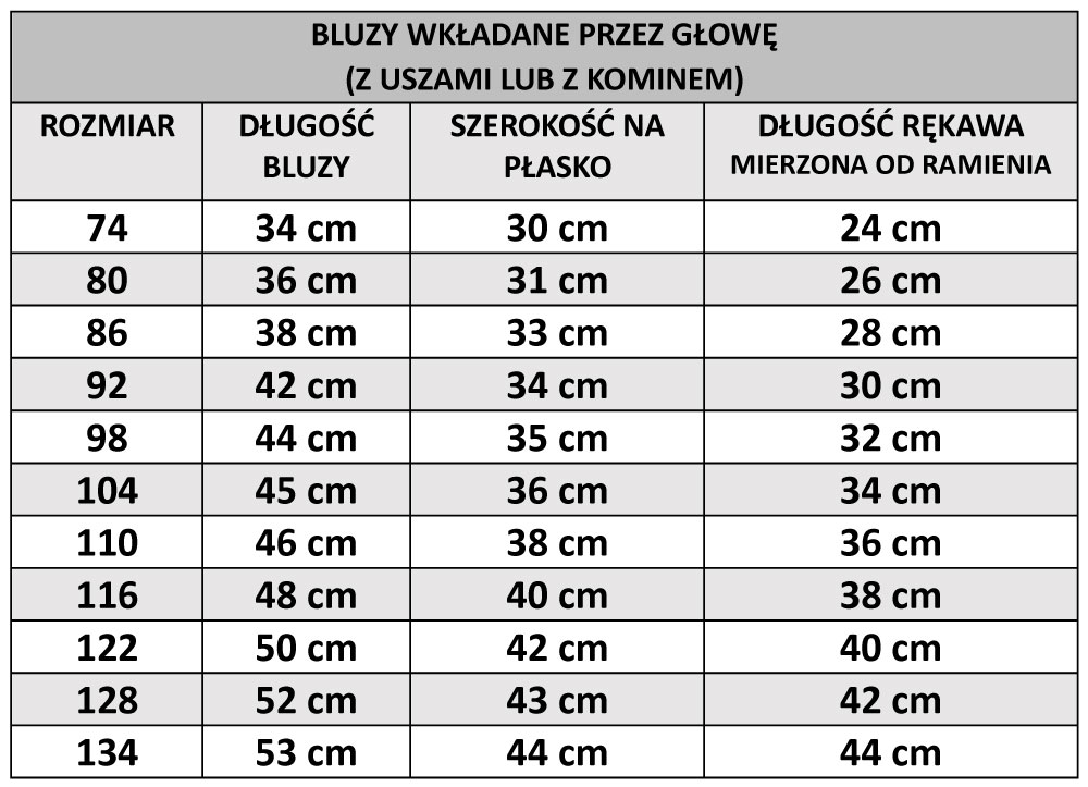 poglądowe pokazanie tabel rozmiarów i jak pomierzyć dzieciaka
